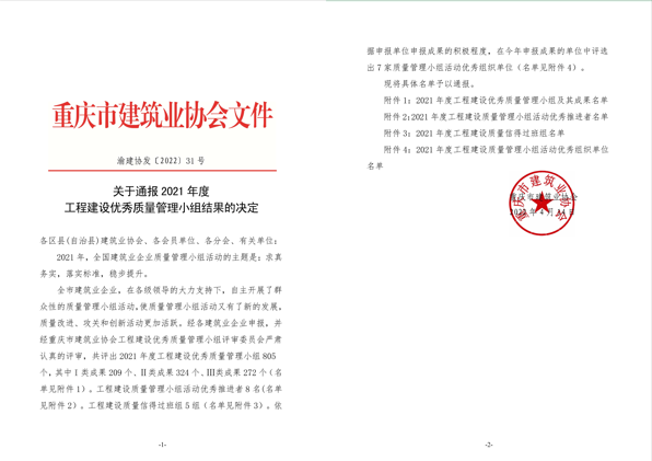 4月14日,在重慶市建筑業(yè)協(xié)會(huì)舉辦的2021年度工程建設(shè)質(zhì)量管理小組優(yōu)秀成果展示經(jīng)驗(yàn)交流會(huì)上,北新路橋集團(tuán)西安分公司申報(bào)的7項(xiàng)QC成果,在參加此次交流發(fā)布的近900件成果中,分獲一類成果1項(xiàng),二類、三類成果各3項(xiàng)。其中由蘭州新區(qū)項(xiàng)目鋼筋焊接工程QC小組申報(bào)的《提高結(jié)構(gòu)受力鋼筋焊接質(zhì)量》獲評(píng)一類成果,并代表北新路橋集團(tuán)作現(xiàn)場(chǎng)經(jīng)驗(yàn)交流。
