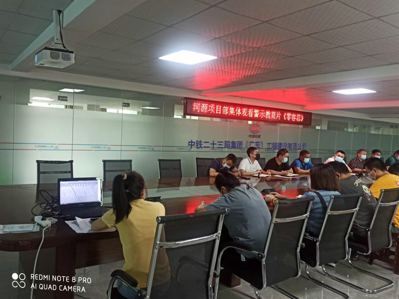4月16日,中鐵二十三局集團(tuán)河源工程項目部組織全體員工共同觀看警示教育片《零容忍》,通過典型案件提高員工們廉潔自律意識和拒腐防變能力。