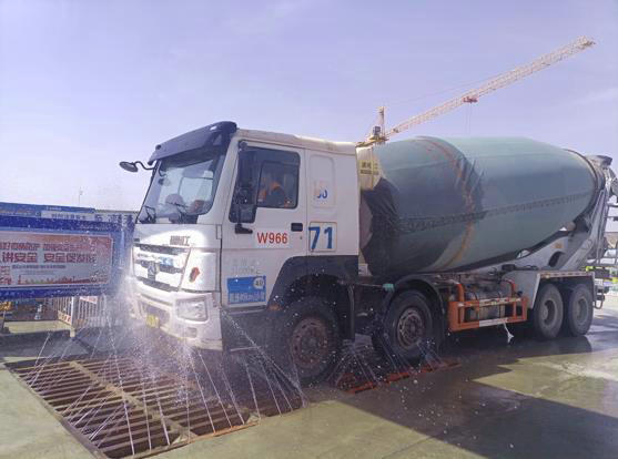 從外圍圓遠(yuǎn)觀項(xiàng)目,入目水霧彌漫,圍擋頂端高壓噴射的不間斷噴灑,有效阻斷了場內(nèi)灰土揚(yáng)塵“外溢”。此外,為防止運(yùn)料車輛帶泥上路、污染路面,該項(xiàng)目在大門口安裝自動(dòng)沖洗臺(tái),對(duì)進(jìn)出車輛進(jìn)行全面沖洗,并安排專人負(fù)責(zé)二次“復(fù)檢”,在沖洗完畢后,對(duì)車底盤、擋板內(nèi)較“頑固”藏匿地的污泥、砂石進(jìn)行確認(rèn)和手動(dòng)清洗,確保半點(diǎn)兒污染物都不帶出工地。該項(xiàng)目在沖洗臺(tái)旁還砌筑二級(jí)、三級(jí)沉淀池,洗車水經(jīng)過回流、沉淀、抽取,可以實(shí)現(xiàn)最大程度的利用,既有效節(jié)約水資源,也降低了成本,實(shí)現(xiàn)了污水“多次”循環(huán)利用。