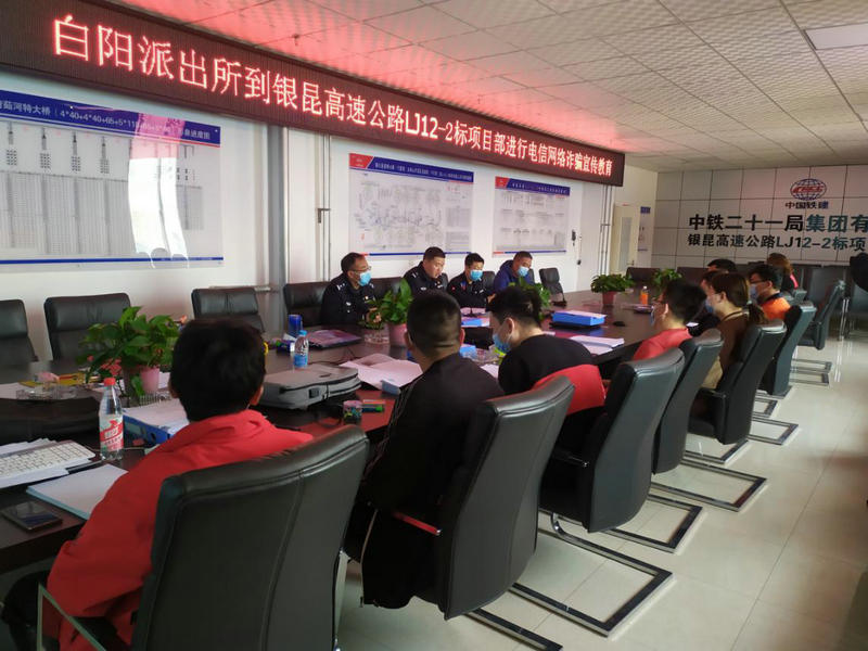 4月21日,中鐵二十一局銀昆高速公路LJ12-2標項目邀請彭陽縣白陽鎮(zhèn)派出所警官到項目部開展防范電信網(wǎng)絡詐騙宣傳專題教育活動,項目部全體職工參加。