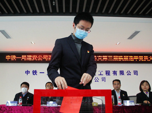 (西安訊)4月24日,中鐵一局建安公司西安建筑分公司黨總支第三屆換屆選舉黨員大會(huì)在分公司會(huì)議室召開,來自分公司各黨支部的60余名黨員同志共同聽取了黨總支工作報(bào)告,選舉產(chǎn)生了黨總支新一屆委員會(huì)。中鐵一局建安公司黨委書記、執(zhí)行董事劉金果出席大會(huì)并講話,黨委組織部部長(zhǎng)魏二雪到會(huì)指導(dǎo)。