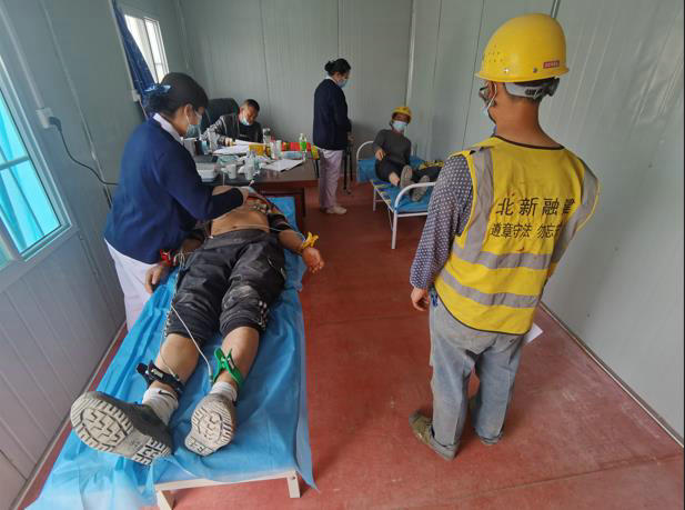 該項目聯(lián)系并邀請當(dāng)?shù)靥m州新區(qū)輔仁醫(yī)院醫(yī)護(hù)人員進(jìn)駐施工現(xiàn)場為農(nóng)民工進(jìn)行體檢,此次體檢除讓農(nóng)民工能及時掌握和了解自身健康狀況,同時也對架子工、塔吊司機等高空危險作業(yè)人員的身體適宜性進(jìn)行全面評估,尤其是對可能患有心臟病、高血壓等疾病人員進(jìn)行篩查,對不適合當(dāng)前崗位的人員進(jìn)行調(diào)整,以保障農(nóng)民工人身安全,防范和杜絕事故發(fā)生。