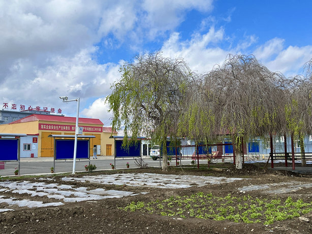 茅檐長(zhǎng)掃凈無(wú)苔,花木成畦手自栽。4月26日,是最后的“錦上添花”時(shí)刻,修剪樹(shù)枝、開(kāi)渠引水、栽種鮮花,鮮花鋪路迎“新年”,風(fēng)雨相隨繪藍(lán)圖(受塔城氣溫影響,項(xiàng)目于4月初復(fù)工)。