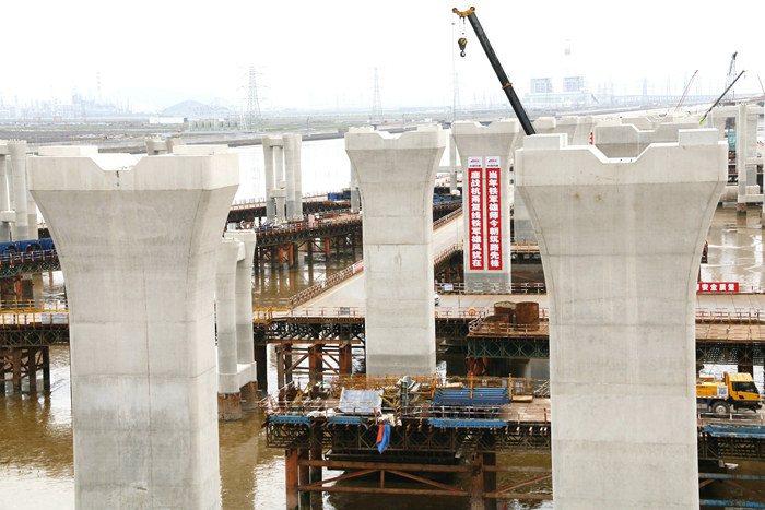 本站消息 日前,中鐵十五局集團杭甬項目濱?;ネㄖ骶€橋墩身完工。