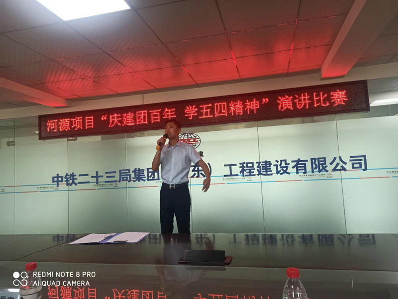 為傳承和弘揚(yáng)五四精神,充分展示河源工程項(xiàng)目部青年干部朝氣蓬勃、奮發(fā)向上的精神風(fēng)貌,5月4日,在五四青年節(jié)之際,特舉辦“慶建團(tuán)百年 學(xué)五四精神”主題演講比賽。項(xiàng)目部35歲以下青年干部員工共同領(lǐng)略了青春擔(dān)當(dāng)與風(fēng)采。項(xiàng)目部黨支部副書記、項(xiàng)目副經(jīng)理、辦公室主任、團(tuán)支部書記等5人擔(dān)任評(píng)委。
