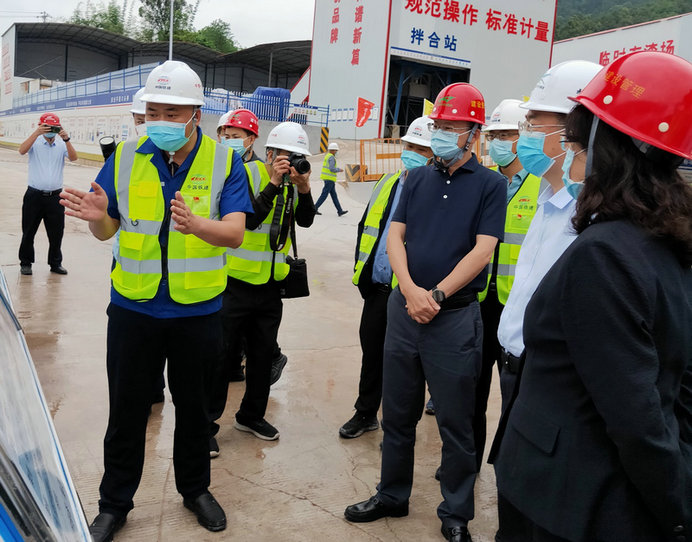 曹元均(左3)與技術(shù)人員現(xiàn)場(chǎng)研究創(chuàng)新方案