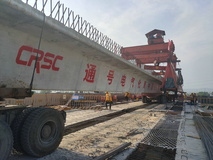 5月23日6點(diǎn)15分,隨著架橋機(jī)的緩緩移動(dòng),一片長(zhǎng)30米,寬2.85米,重100.329噸的預(yù)制邊跨箱梁精準(zhǔn)落位,標(biāo)志著由通號(hào)電氣化局中原公司承建的新鄉(xiāng)牧野大橋改建工程新建橋跨京廣鐵路架梁施工全面展開(kāi),項(xiàng)目建設(shè)取得關(guān)鍵性進(jìn)展。