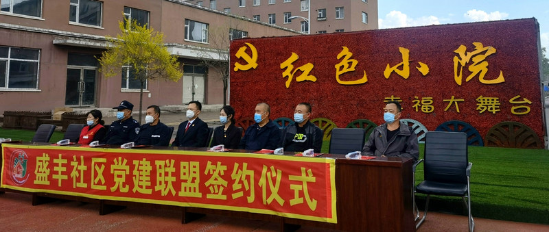 在社區(qū)莊重的紅色小院幸福大舞臺,孫家堡子街道派出所、中鐵二十三局集團等9家聯(lián)盟成員單位,分別與盛豐社區(qū)簽訂了《黨建聯(lián)盟共建協(xié)議書》,雙方在組織共建共促、黨員隊伍共育、資源共享、精神文明共創(chuàng)、服務(wù)難題共解等方面做出鄭重承諾。