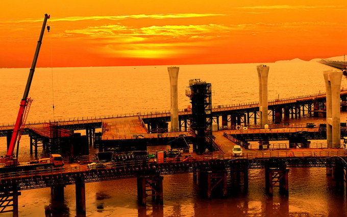 同時(shí),根據(jù)濱?;ネ芰盒枰?,該項(xiàng)目部主持召開了由寧波市高等級公路建設(shè)管理中心、金塘大橋管理局,寧波市鎮(zhèn)海區(qū)資規(guī)局、環(huán)境局,金塘大橋建設(shè)管理中心、浙江投資交通建設(shè)管理有限公司等單位專家參加的提梁站及存梁區(qū)海域使用報(bào)告評審會,會議順利通過了提交的報(bào)告,為建設(shè)提梁站施工打開了局面。由于在舟山生產(chǎn)的鋼箱梁超寬,無法通過金塘大橋,經(jīng)過反復(fù)考慮,決定從水路運(yùn)輸、在石化區(qū)碼頭卸梁,再裝船直達(dá)互通區(qū)提梁站,然后用重型卡車將一片片梁運(yùn)至現(xiàn)場。