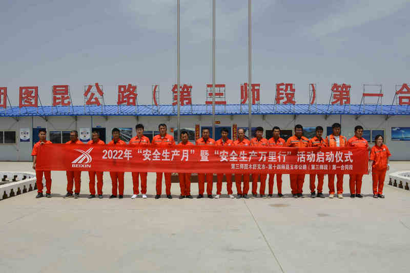 圖木舒克訊(通訊員 梁毅)5月28日上午,在第21個(gè)全國(guó)“安全生產(chǎn)月”來(lái)臨之際,為進(jìn)一步夯實(shí)項(xiàng)目部安全管理工作、增強(qiáng)人員安全意識(shí)、鞏固和保持項(xiàng)目部良好的安全生產(chǎn)氛圍和安全生產(chǎn)態(tài)勢(shì),北新路橋集團(tuán)圖昆公路(三師段)一標(biāo)項(xiàng)目舉行了 “安全生產(chǎn)月”活動(dòng)啟動(dòng)儀式,圖木舒克分公司黨支部書記董軍,項(xiàng)目管理人員20余人參加了本次活動(dòng)。