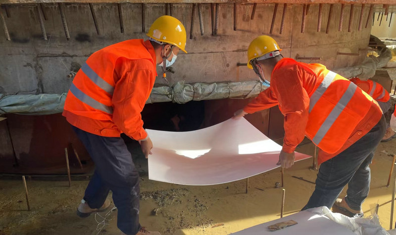 “安裝四氟乙烯滑板及配重作業(yè)是橋梁轉(zhuǎn)體施工準備的關(guān)鍵環(huán)節(jié),對保證橋梁轉(zhuǎn)體的平穩(wěn)、安全意義重大。目前各項準備工作基本就緒,箱梁的‘華麗轉(zhuǎn)身’值得期待”項目總工程師孫賓介紹說。