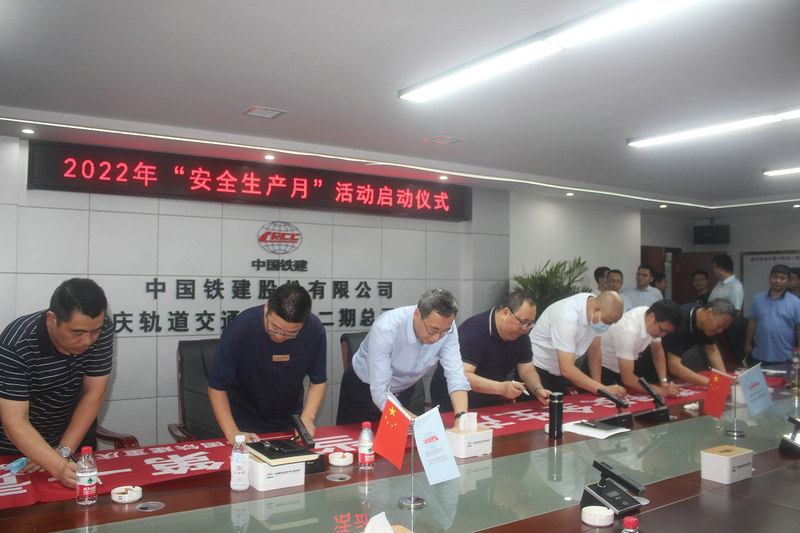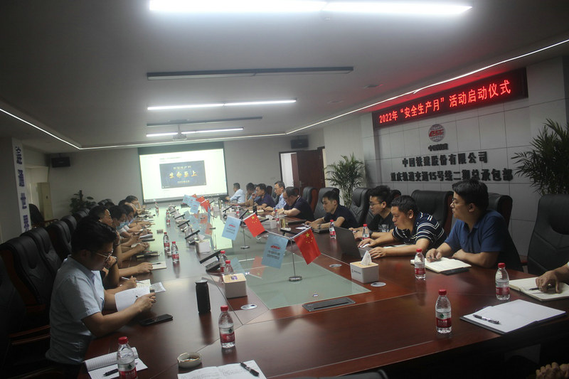 5月31日晚,中鐵建重慶軌道交通15號(hào)線二期土建工程總承包部舉行“安全生產(chǎn)月”活動(dòng)啟動(dòng)儀式,總承包部全員、各標(biāo)段項(xiàng)目經(jīng)理、書記、安全總監(jiān)參加,總承包部副指揮長(zhǎng)彭程鵬主持。