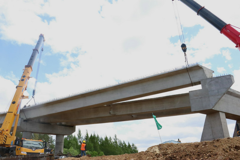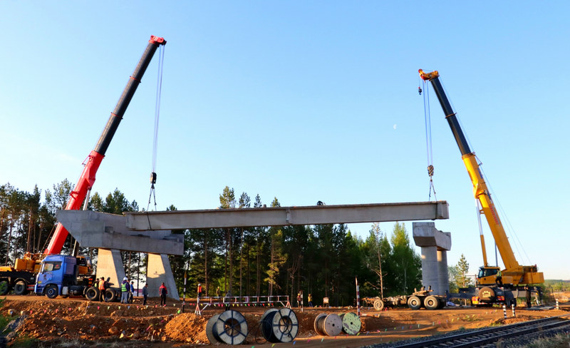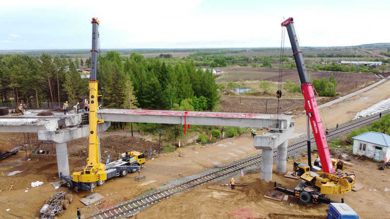 北黑鐵路K273+179.46公鐵立交橋工程,連接202國道和黃金子村,全長96.06米,共三孔9片箱梁,單片箱梁重120多噸。為了確保施工安全和工程質量,
