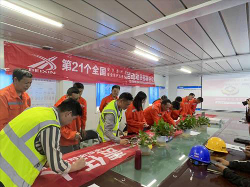 啟動儀式上,該項目部傳達了集團總部、分公司關于安全生產(chǎn)月活動的文件要求,宣貫了項目部安全生產(chǎn)月活動方案;學習了《習近平總書記關于安全生產(chǎn)重要論述生命重于泰山》、《國務院安全生產(chǎn)十五條措施》、《安全生產(chǎn)法》等相關文件;參會人員在“安全生產(chǎn)月”主題條幅上簽字并鄭重宣誓。