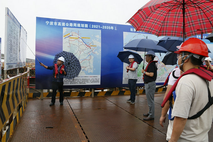 本站消息 6月10日下午,寧波市象山縣交通開發(fā)集團(tuán)有限公司主持工作的副總經(jīng)理舒成效帶隊(duì)到中鐵十五局集團(tuán)杭甬項(xiàng)目濱?;ネìF(xiàn)場(chǎng)觀摩。