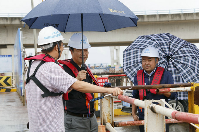 隨后,舒成效一行查看了樁基、承臺(tái)、橋墩施工情況,他說,不虛此行,耳聞不如一見,濱海互通建設(shè)得很漂亮,承臺(tái)、墩身光潔美觀,這么大的工程,能做到這個(gè)程度真不容易,中鐵十五局是很有實(shí)力的,我要很好地學(xué)習(xí),把經(jīng)驗(yàn)帶回去,讓集團(tuán)管理團(tuán)隊(duì)把正在承建的一個(gè)海上工程干好。