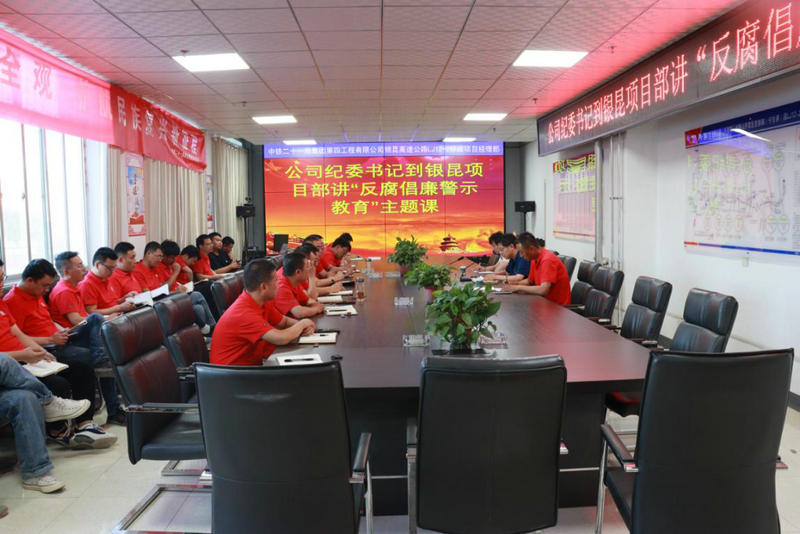 為堅決落實好黨中央、集團公司黨委、公司黨委對“反腐倡廉”工作要求。6月15日,中鐵二十一局四公司紀委書記李興軍到銀昆高速公路LJ12-2標項目講授“反腐倡廉宣傳教育”主題課,總部紀檢工作部部長陪同,項目部、工區(qū)、實驗室及拌合站全體員工參加。