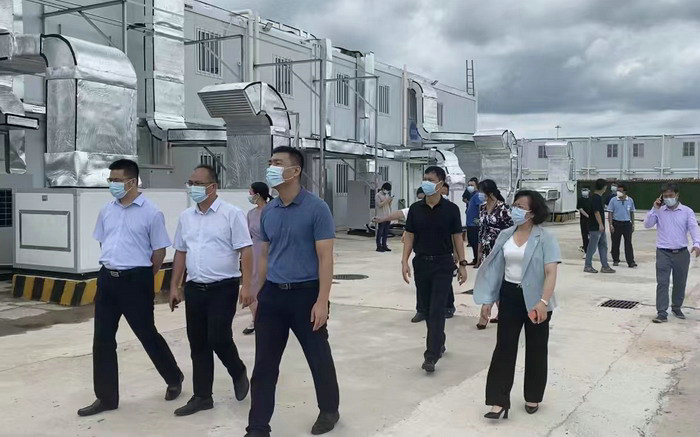 圖為各級政府部門領(lǐng)導參觀方艙醫(yī)院