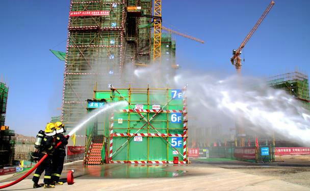 本次演練模擬高空墜落、物體打擊、消防應(yīng)急演練三個(gè)部分。演練事故發(fā)生后,該項(xiàng)目部第一時(shí)間啟動(dòng)應(yīng)急預(yù)案,迅速組織人員疏散,各應(yīng)急救援小組在接到命令后,立即攜帶應(yīng)急救援物資趕赴現(xiàn)場(chǎng),各司其責(zé)、明確分工、緊密配合,迅速有效控制現(xiàn)場(chǎng),防止和避免事態(tài)蔓延擴(kuò)大。經(jīng)過(guò)搶險(xiǎn)救援,現(xiàn)場(chǎng)被困人員全部脫困,傷者被及時(shí)送往醫(yī)院救治,演練模擬火災(zāi)經(jīng)過(guò)自救和消防隊(duì)的支援也被撲滅。演練過(guò)程中全體參演人員精神飽滿(mǎn),協(xié)調(diào)有序,演練震撼有力,逼真展現(xiàn)了事故上報(bào)、預(yù)案啟動(dòng)、現(xiàn)場(chǎng)搶險(xiǎn)、聯(lián)動(dòng)救援、安全警戒、事故調(diào)查等應(yīng)急救援流程和工作環(huán)節(jié),達(dá)到了檢驗(yàn)預(yù)案、鍛煉隊(duì)伍的目的。此次演練結(jié)合項(xiàng)目建筑工程特點(diǎn)和施工實(shí)際,具有較強(qiáng)的針對(duì)性和實(shí)用性,得到各觀摩單位一致好評(píng)。
