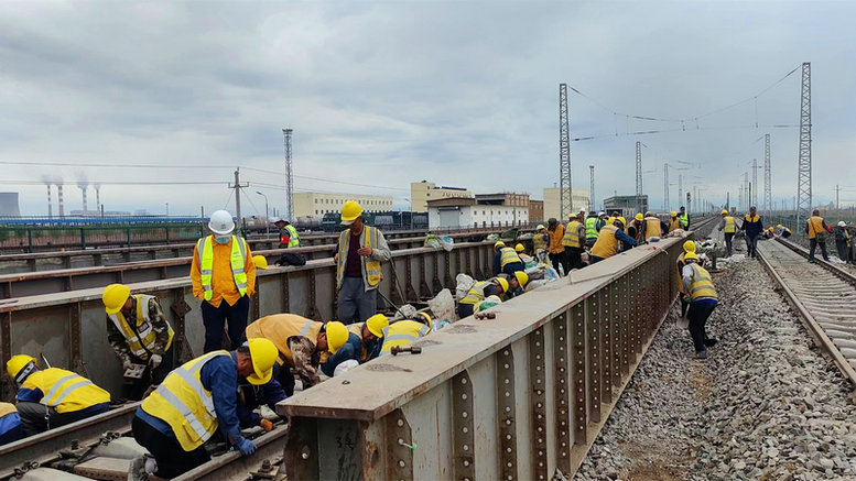 6月19日,中鐵二十一局烏將鐵路項目施工現場機械轟鳴,經項目全體人員連續(xù)三天共9個小時天窗點緊張施工,最后一片鋼便梁架設完成,標志著全線首個跨越三股既有線鋼便梁架設施工順利完工,并正點通車。