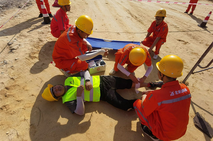 為提高演練效果,該項(xiàng)目部精心編排應(yīng)急演練方案,參照現(xiàn)場(chǎng)作業(yè)實(shí)際進(jìn)行模擬演練。此次演練活動(dòng)共分安全保衛(wèi)、搶險(xiǎn)救援、醫(yī)療、物資保障、通訊聯(lián)絡(luò)等5個(gè)小組。