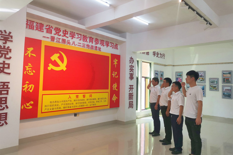 在晉江圍頭八二三抗戰(zhàn)遺址場(chǎng)館內(nèi),一路走來,大家看到了遺址中圍頭村這個(gè)曾經(jīng)飽受戰(zhàn)爭(zhēng)摧殘的村子,在中國(guó)共產(chǎn)黨的領(lǐng)導(dǎo)下,出現(xiàn)的翻天覆地的變化。參觀完后,大家深受啟發(fā),表示,作為共產(chǎn)黨員應(yīng)該帶頭走在為人民創(chuàng)造幸福生活的最前面,想人民所想,做人民所想,充分發(fā)揮先鋒模范作用。在該黨支部書記的帶領(lǐng)下,黨員們面對(duì)黨旗重溫入黨誓詞,銘記黨員的責(zé)任和使命。