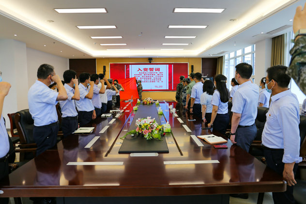 參觀結(jié)束后,大家來到該公司會(huì)議室面對(duì)黨旗重溫了入黨誓詞。“我志愿加入中國(guó)共產(chǎn)黨,擁護(hù)黨的綱領(lǐng),遵守黨的章程,履行黨員義務(wù)……”在領(lǐng)誓人的帶領(lǐng)下,大家一起舉起右拳,莊嚴(yán)宣誓。鏗鏘有力的誓言在會(huì)場(chǎng)內(nèi)相互激蕩,莊嚴(yán)肅穆,激奮人心,“我們要把對(duì)黨的忠誠(chéng)化為勇?lián)姑膹?qiáng)大動(dòng)力,為企業(yè)的發(fā)展和社會(huì)的進(jìn)步貢獻(xiàn)自己的最大力量。”