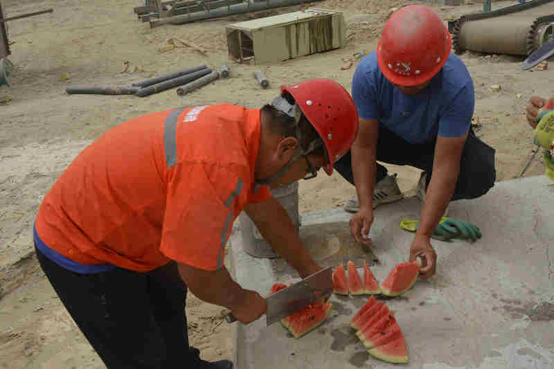 該項目正值建設(shè)高峰期,廣大工友們不畏酷暑,在高溫下堅守崗位,見此狀況,項目部工會小組迅速行動,為工人們送去藿香正氣水、西瓜、綠豆等防暑物品。項目部負(fù)責(zé)人叮囑勞務(wù)隊要合理安排高溫天氣下工人的施工計劃,妥善安排好工人的生活飲食,并加強高溫期間的安全生產(chǎn)檢查力度,保障工人安全的工作環(huán)境,主動作為,多措并舉戰(zhàn)勝酷暑。