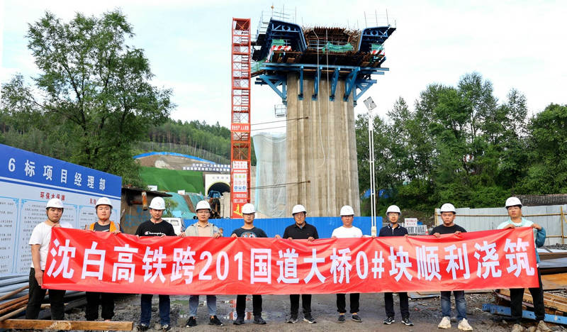 7月18日8時(shí)30分,沈白高鐵吉林段TJ-6標(biāo)跨201國道大橋8號墩0號塊開始澆筑混凝土施工,拉開了該標(biāo)段連續(xù)梁施工序幕。