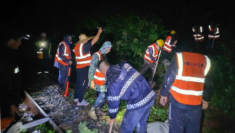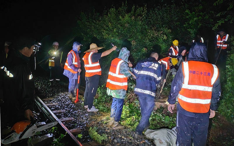 “今天傍晚的持續(xù)強(qiáng)降雨導(dǎo)致渾白鐵路三處路塹邊坡滑坡,危及鐵路行車安全,請(qǐng)求支援”。7月23日20時(shí)19分,隨著一陣急促的手機(jī)鈴聲響起,中鐵二十三局集團(tuán)沈白高鐵項(xiàng)目部三分部接到了通化鐵路工務(wù)段泉陽線路車間書記李同旭的求援電話,分部經(jīng)理郭曉斌聞“汛”而動(dòng),迅速調(diào)集車輛、集結(jié)人員,火速奔赴水害現(xiàn)場......