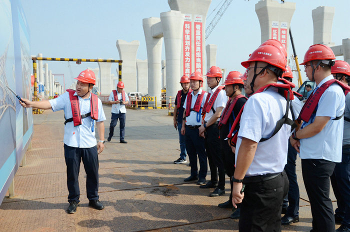 上午10點(diǎn),徐建祥率領(lǐng)寧波市“最美退役軍人代表”一行來到濱?;ネê诵膮^(qū)域,項(xiàng)目部常務(wù)副經(jīng)理喬繼保受公司副總經(jīng)理兼杭甬項(xiàng)目負(fù)責(zé)人黃偉委托,向前來觀摩的退役軍人介紹了濱海高架、連續(xù)梁完工,濱?;ネ痘?、承臺、墩身的數(shù)量、施工安全、質(zhì)量進(jìn)度、環(huán)保、架梁,以及正在建設(shè)的提梁站等情況。徐建祥詢問了項(xiàng)目的工期、隊(duì)伍管理、物資設(shè)備管理、如何克服高溫、嚴(yán)寒、臺風(fēng)等極端天氣給施工帶來的不利影響等情況,喬繼保一一進(jìn)行了回答。他們在主線橋、匝道橋,三五成群地走走看看,對眼前規(guī)模宏大、精美、林立的橋墩感到很震撼,不時(shí)地舉起手機(jī)錄制視頻、拍照,分享給親人和單位同事,興奮地心情溢于言表,對為建濱?;ネǜ冻龃罅啃难秃顾?、推動寧波市高質(zhì)量發(fā)展的中鐵十五局建設(shè)者表示崇高的敬意!