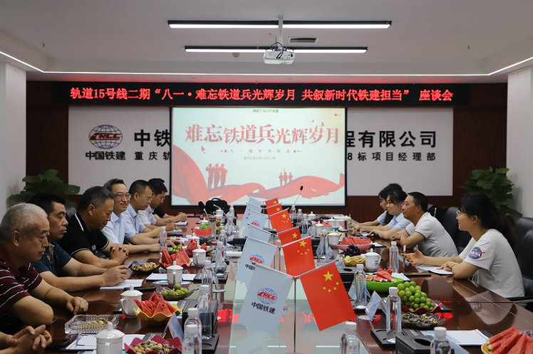 7月31日下午,在中國(guó)人民解放軍建軍95周年即將到來(lái)之際,中國(guó)鐵建重慶軌道交通15號(hào)線二期土建總承包部開(kāi)展“難忘鐵道兵光輝歲月,共敘新時(shí)代鐵建擔(dān)當(dāng)”八一建軍節(jié)主題座談會(huì),總承包部及所屬標(biāo)段9名退伍鐵道兵員工、3名退伍軍人和多名青年員工代表歡聚一堂,共慶節(jié)日,話軍旅,講故事,談感想,抒豪情,表態(tài)度。