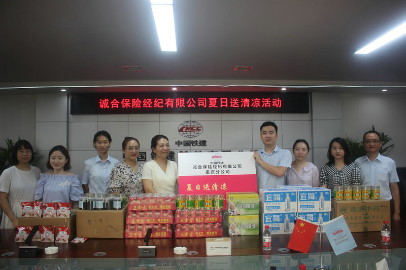 7月28日,重慶誠(chéng)合保險(xiǎn)經(jīng)紀(jì)公司、中國(guó)人壽財(cái)產(chǎn)保險(xiǎn)公司開(kāi)展夏日送清涼活動(dòng),為中國(guó)鐵建重慶軌道交通15號(hào)線二期總承包部送來(lái)消暑用品,并向總承包部全體職工表示慰問(wèn)。