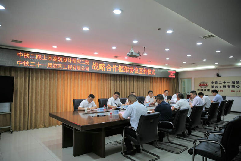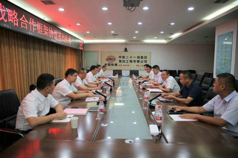 期間,中鐵二院土木建筑設(shè)計研究二院副院長劉慶與中鐵二十一局四公司副總經(jīng)理張高放代表雙方簽署戰(zhàn)略合作協(xié)議。