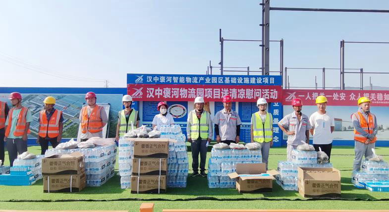 戰(zhàn)高溫,斗酷暑,顯關(guān)懷,暖人心。8月12日,北新路橋集團西安分公司漢中褒河物流園項目組織開展“送清涼”慰問活動。