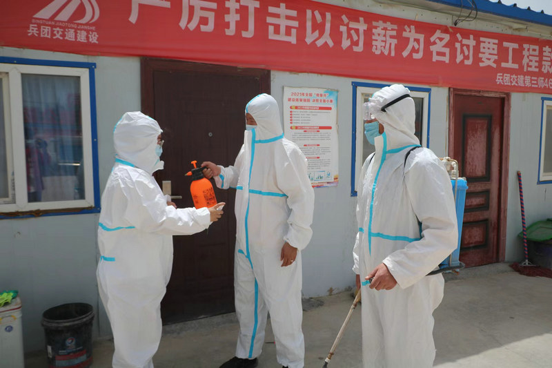莎車(chē)訊(通訊員 臧明超 吳玉梅)近日,新疆部分地區(qū)連續(xù)出現(xiàn)無(wú)癥狀感染者,烏魯木齊市重點(diǎn)城區(qū)實(shí)行臨時(shí)性靜態(tài)管理措施,再次敲響了疫情防控警鐘。為確保項(xiàng)目在生全生產(chǎn)的前提下有序推進(jìn),兵團(tuán)交建第三師46團(tuán)-艾力西湖鎮(zhèn)公路項(xiàng)目打出疫情防控“組合拳”,全力以赴落實(shí)疫情防控工作。