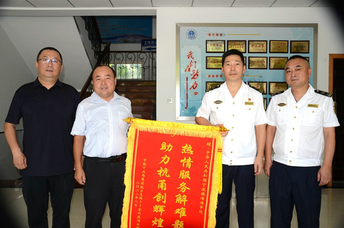 為表達(dá)謝意,杭甬項(xiàng)目部制作了一面上書“熱情服務(wù)解難題 助力杭甬創(chuàng)輝煌”的錦旗,送至寧波市鎮(zhèn)海區(qū)海事處。代東起表示,海事處與十五局目標(biāo)一致,將一如既往地傾力支持杭甬項(xiàng)目建設(shè),助推項(xiàng)目如期高效、優(yōu)質(zhì)、安全完成架梁任務(wù)。