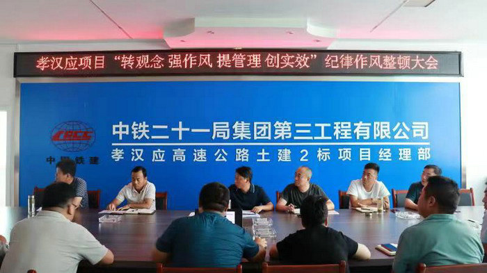 圖為項(xiàng)目部召開(kāi)紀(jì)律作風(fēng)整頓會(huì)議