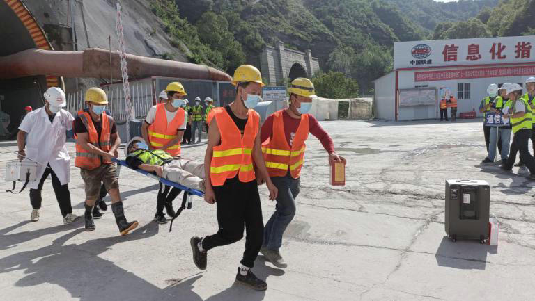 演練開始前,項目安全總監(jiān)演示并講解了滅火器的正確使用方法和如何正確佩戴防毒面罩。隨后,演練正式開始,演練模擬在新尚家溝隧道發(fā)生火災(zāi),一名施工人員被困,急需救援。項目部接到事故報告后,立即啟動應(yīng)急預(yù)案,迅速展開救援,從火情發(fā)生到被困人員解救及火情控制過程,整場演練分工明確,救援工作高效、有序,達到了演練的目的。演練結(jié)束后,項目領(lǐng)導對本次演練提出了意見與建議,并強調(diào)現(xiàn)場要時刻保持警惕,確保安全施工。