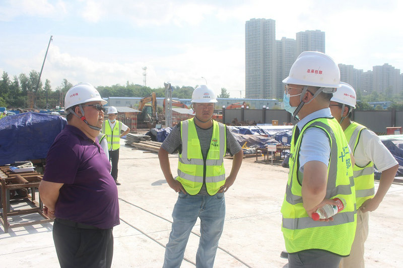 總承包部指揮長(zhǎng)李兵(左1)在現(xiàn)場(chǎng)督查