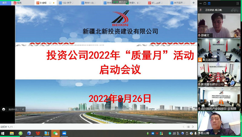 烏魯木齊訊(通訊員 王冬)8月26日上午,北新投資公司召開(kāi)2022年“質(zhì)量月”活動(dòng)啟動(dòng)會(huì), 此次會(huì)議以“推動(dòng)質(zhì)量變革創(chuàng)新 促進(jìn)質(zhì)量強(qiáng)國(guó)建設(shè)”為主題。會(huì)議由該公司副總經(jīng)理、總工程師楊云峰主持,公司機(jī)關(guān)安質(zhì)環(huán)部、各單位質(zhì)量分管領(lǐng)導(dǎo)、技術(shù)負(fù)責(zé)人、項(xiàng)目部生產(chǎn)經(jīng)理、工程部全體人員,負(fù)責(zé)人共31人參加。