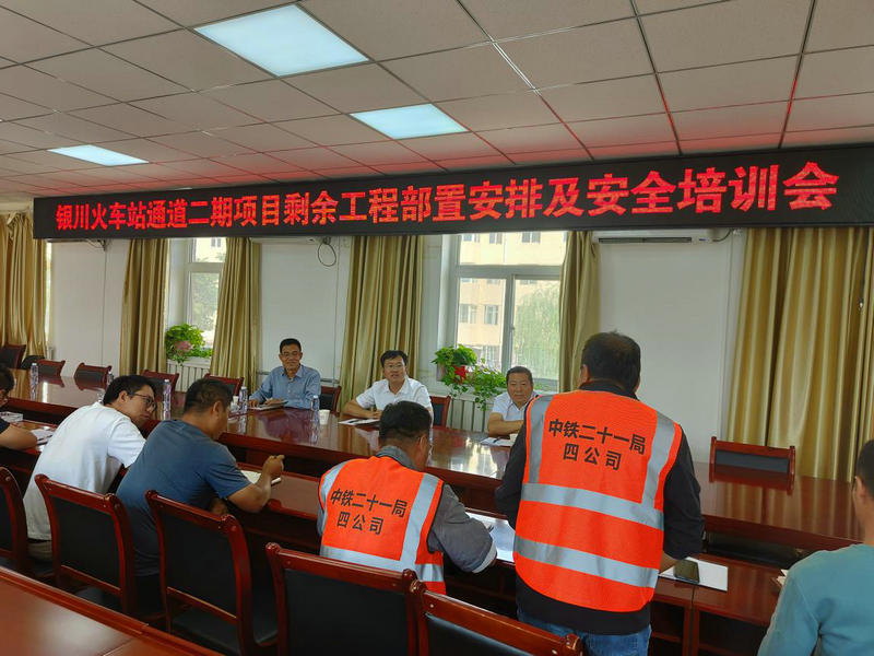8月25日下午,中鐵二十一局四公司黨委書(shū)記、執(zhí)行董事劉忠厚,副總經(jīng)理、總工程師黃君洲,副總經(jīng)理何學(xué)東到銀川火車站通道二期工程項(xiàng)目部組織召開(kāi)剩余工程任務(wù)布置暨安全生產(chǎn)會(huì)議,項(xiàng)目部全體職工參加會(huì)議。