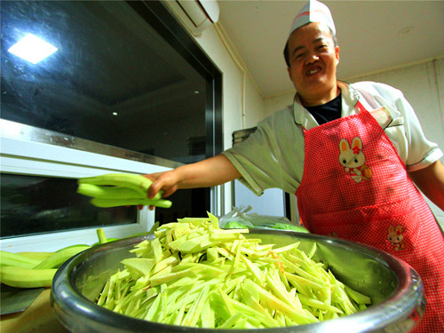 ?。ㄗT帥)“自己種的線辣椒奏是美,泡上兩三天就能吃,一口辣椒一口饃,嘹咋咧。”9月1日,中鐵一局集團(tuán)沈陽地鐵4號線項目部的食堂里,陜西籍員工老孟一邊夾起腌制好的線辣子,一邊咬著剛出鍋的熱饅頭,喜悅之情不予言表。
