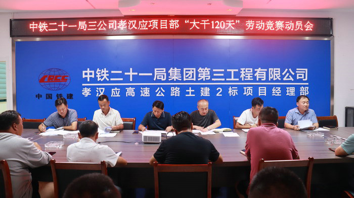 本網(wǎng)湖北孝感9月6日訊(通訊員 賈瑛 記者 尹登明)9月5日晚上,為貫徹落實公司《關(guān)于開展2022年“大干120天”勞動競賽活動的通知》文件精神,激發(fā)項目員工的工作熱情、確保全年產(chǎn)值任務(wù)如期完成,中鐵二十一局三公司孝漢應(yīng)項目召開2022年“大干120天”勞動競賽動員會,項目部全體職工、工區(qū)負(fù)責(zé)人、拌合站站長、試驗室主任、項目技術(shù)骨干、各施工隊負(fù)責(zé)人參會。會議由項目總工牛六喜主持。