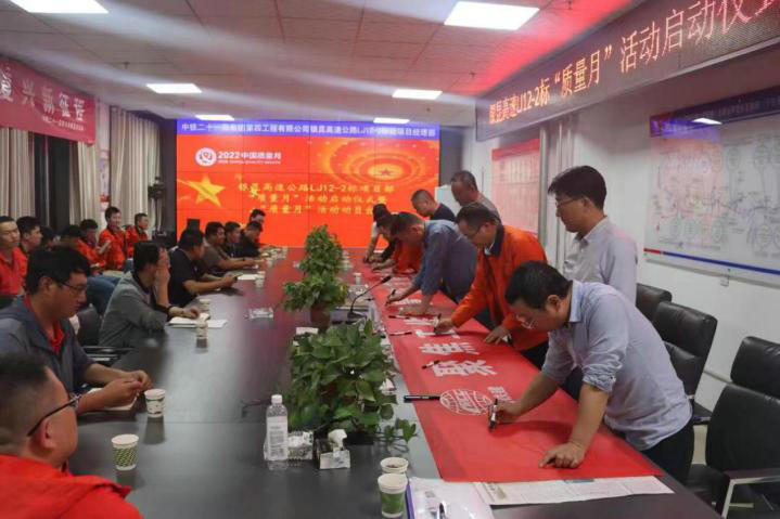 9月5日,中鐵二十一局銀昆高速公路LJ12-2標(biāo)項(xiàng)目召開“質(zhì)量月”啟動(dòng)會(huì)議,項(xiàng)目領(lǐng)導(dǎo)班子、各部室負(fù)責(zé)人等相關(guān)人員參加并簽字承諾。