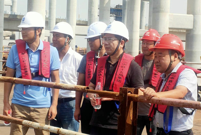 隨后,鄧念兵查看了A匝道正在施工的橋墩,提出高空作業(yè)中的一些疑問(wèn),黃偉作了回答。鄧念兵環(huán)顧四周林立的橋墩后提出三點(diǎn)要求:一是要做好高空施工安全防范。項(xiàng)目進(jìn)入后期,不能放松安全管理,運(yùn)梁、架梁都有安全風(fēng)險(xiǎn),對(duì)員工進(jìn)行經(jīng)常性安全教育與防護(hù)措施相結(jié)合。二是抓好施工質(zhì)量。橋墩施工和鋼箱梁生產(chǎn),要規(guī)范施工,技術(shù)人員要現(xiàn)場(chǎng)指導(dǎo),嚴(yán)格把好每道工序質(zhì)量關(guān),不能出任何紕漏。三是加快施工進(jìn)度。工期不等人,濱?;ネㄔ训冷撓淞哼\(yùn)輸、架設(shè)不是一件簡(jiǎn)單的事,每個(gè)環(huán)節(jié)都要考慮周全,要優(yōu)化人力、機(jī)械設(shè)備資源,縮短工序周期,提前完工,業(yè)主高興,對(duì)十五局也是好事。