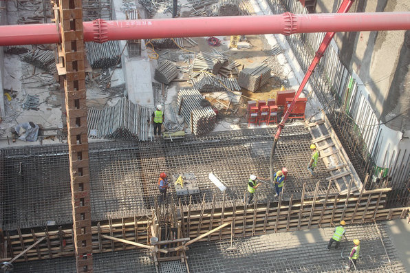 18標(biāo)工人在禮學(xué)路站澆筑底板混凝土