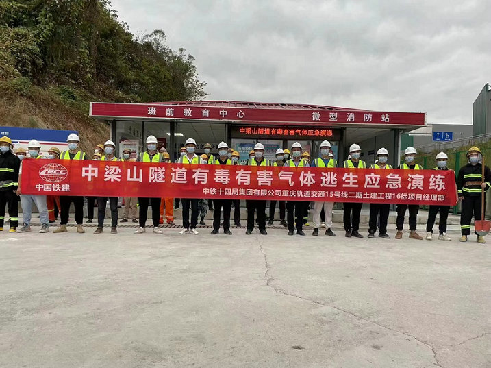 16標(biāo)項(xiàng)目部開展中梁山隧道有毒有害氣體逃生應(yīng)急演練