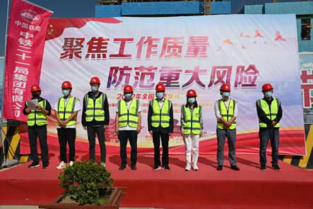 9月12日,中鐵二十一局臨夏工程公司2022年質(zhì)量月活動(dòng)啟動(dòng)儀式在迎曦公館項(xiàng)目施工現(xiàn)場(chǎng)舉辦。臨夏工程公司全體干部職工、所屬各項(xiàng)目班子成員及工程部安質(zhì)部全員、各勞務(wù)隊(duì)代表參加活動(dòng)。