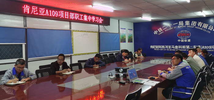 本網(wǎng)肯尼亞內(nèi)羅畢9月17日訊(通訊員 盛俊杰)近日,為進一步提高全員學(xué)習(xí)動力,展現(xiàn)項目良好精神風貌,中鐵二十一局三公司肯尼亞A109公路項目部組織職工進行黨史教育不學(xué)習(xí)。項目部全體員工共計10余人參加會議,會議由項目副書記馮民生主持。